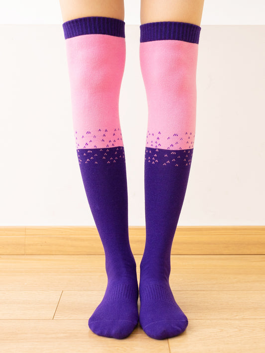 【Yoga Socks】Y1紫粉-女士撞色长筒圆头瑜伽普拉提运动袜