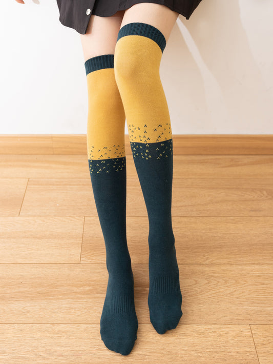 【Yoga Socks】Y1青蓝-女士撞色长筒圆头瑜伽普拉提运动袜
