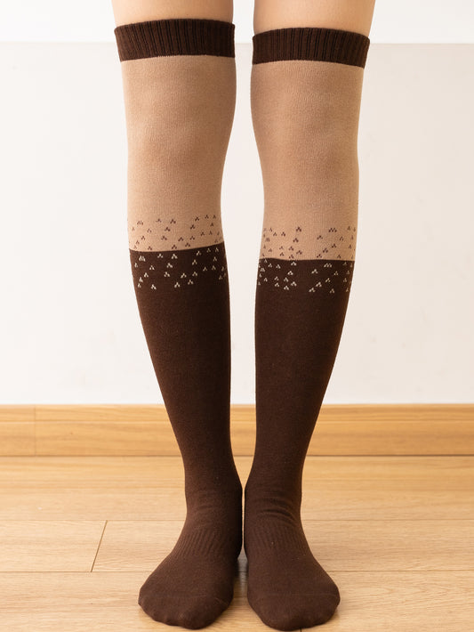 【Yoga Socks】Y1咖米-女士撞色长筒圆头瑜伽普拉提运动袜