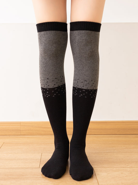 【Yoga Socks】Y1黑灰-女士撞色长筒圆头瑜伽普拉提运动袜