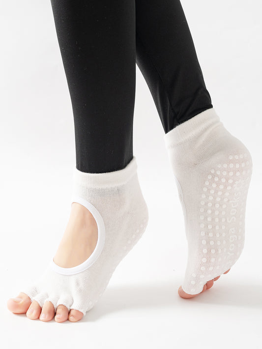 【Yoga Socks】F7米色-女士段色半趾瑜伽普拉提运动袜