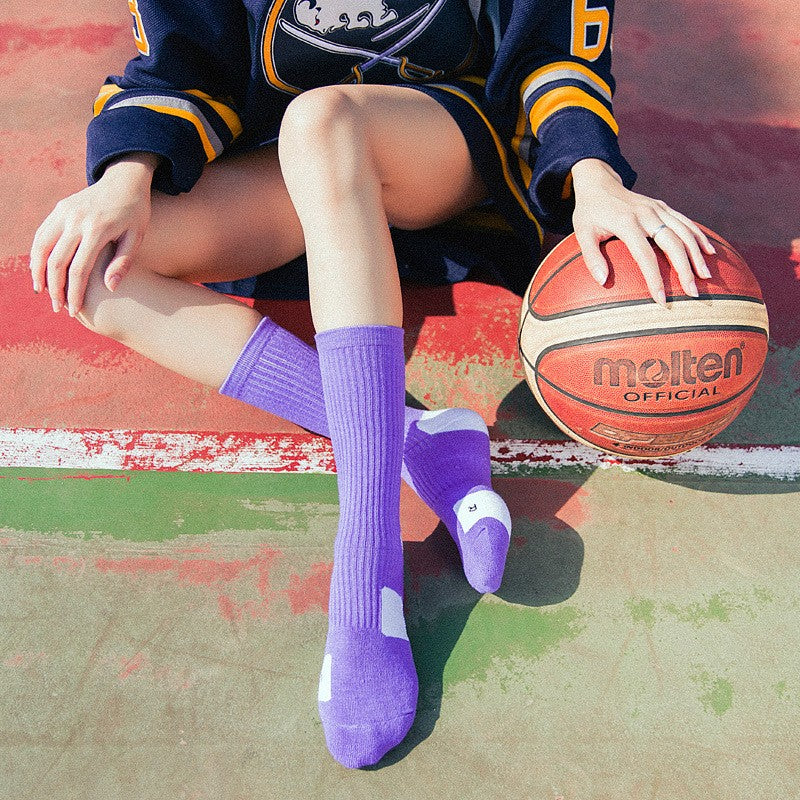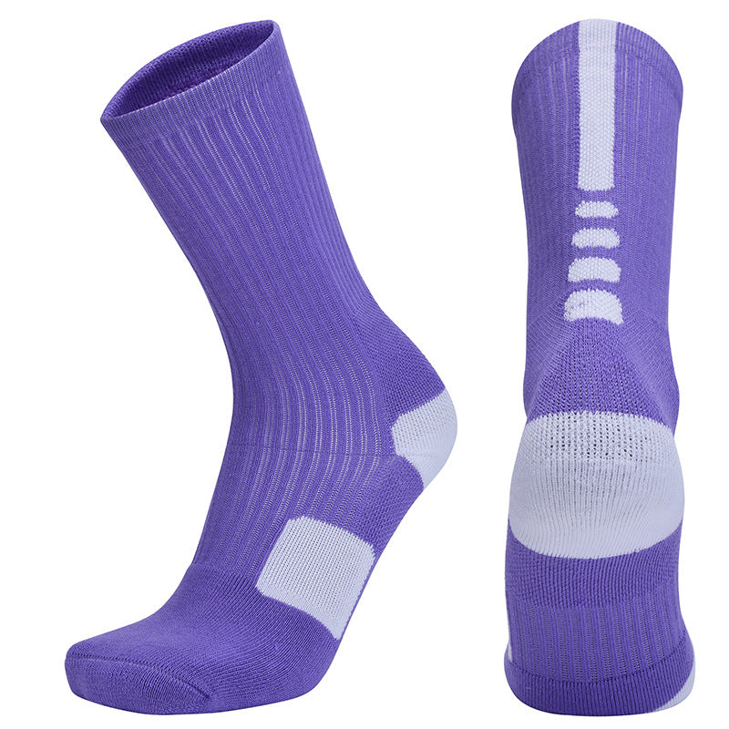 【Basketball Socks】A1紫白-男女通用毛圈长筒篮球运动袜