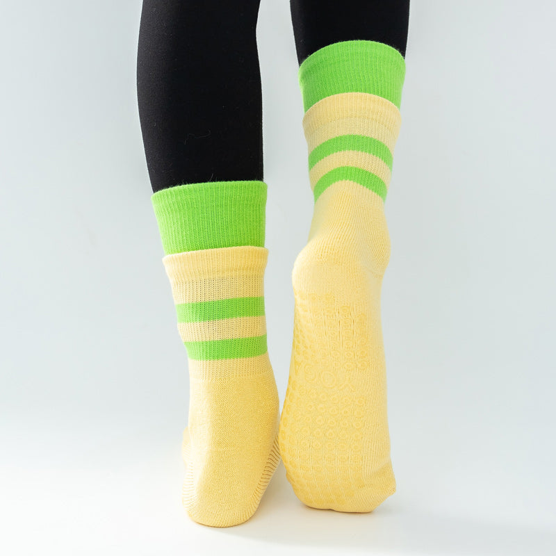 【Yoga Socks】D8黄绿-女士长筒毛圈圆头瑜伽普拉提运动袜