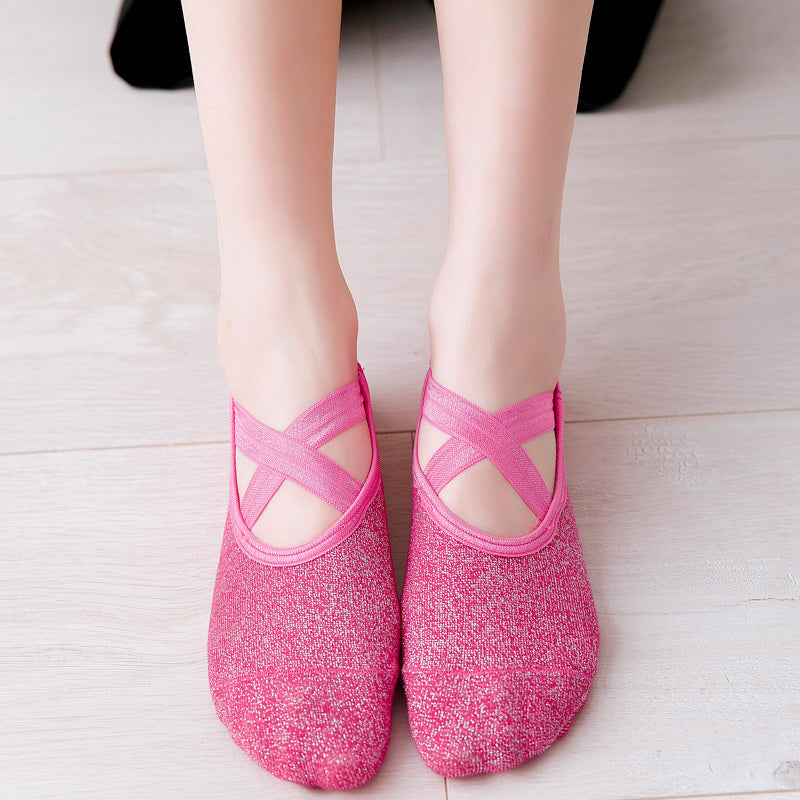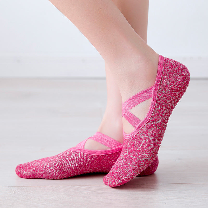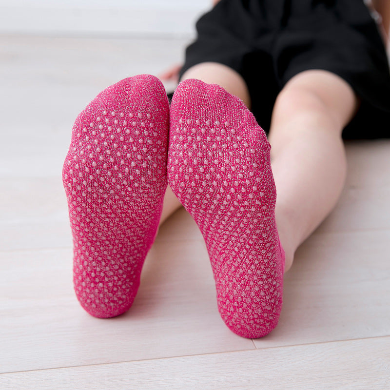【Yoga Socks】H1玫红-女士银丝圆头瑜伽普拉提运动袜