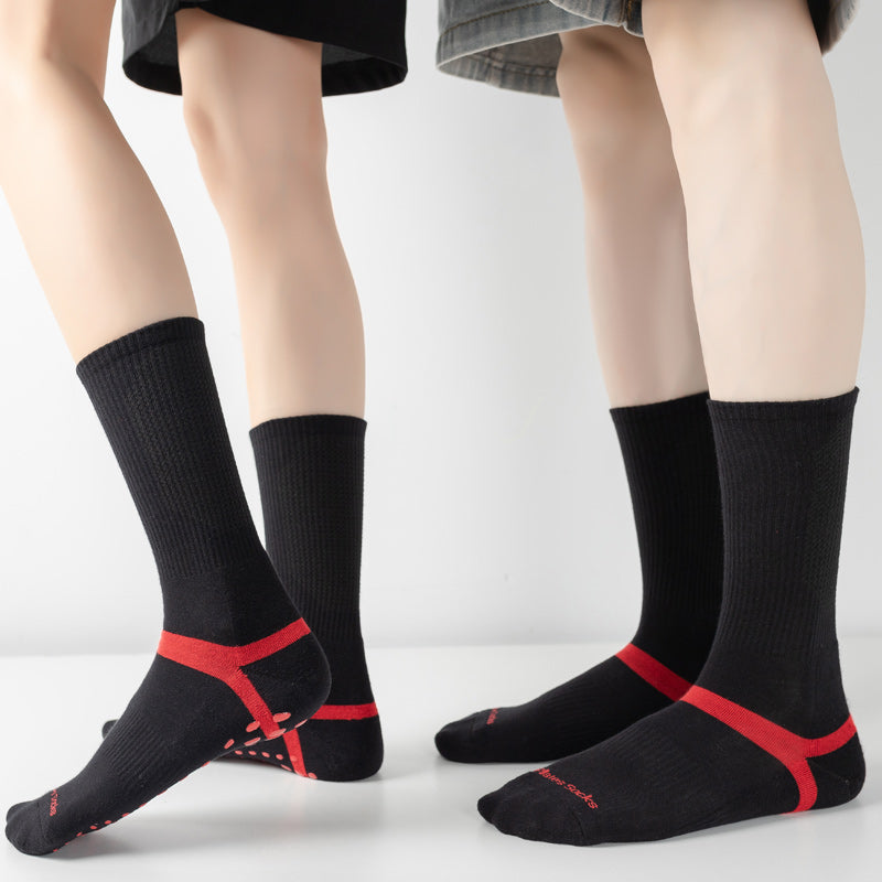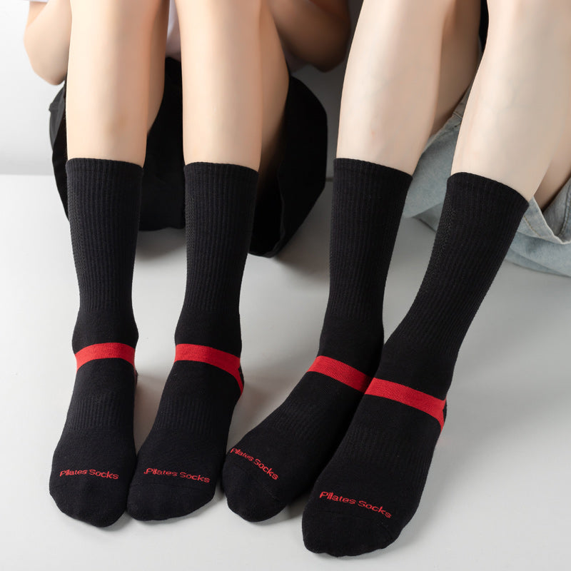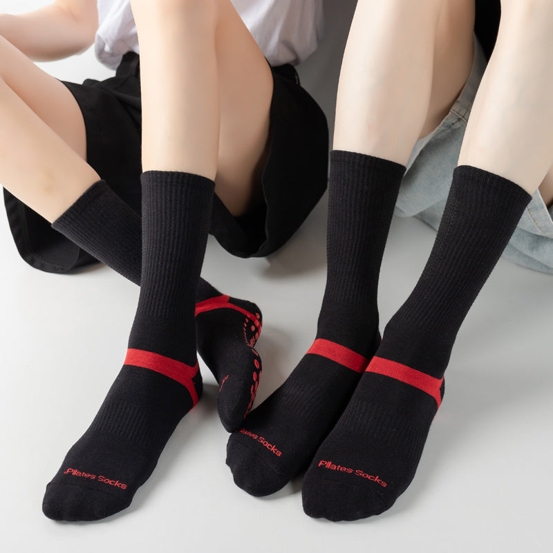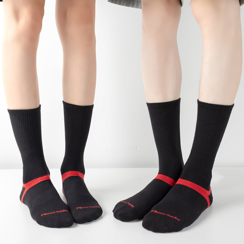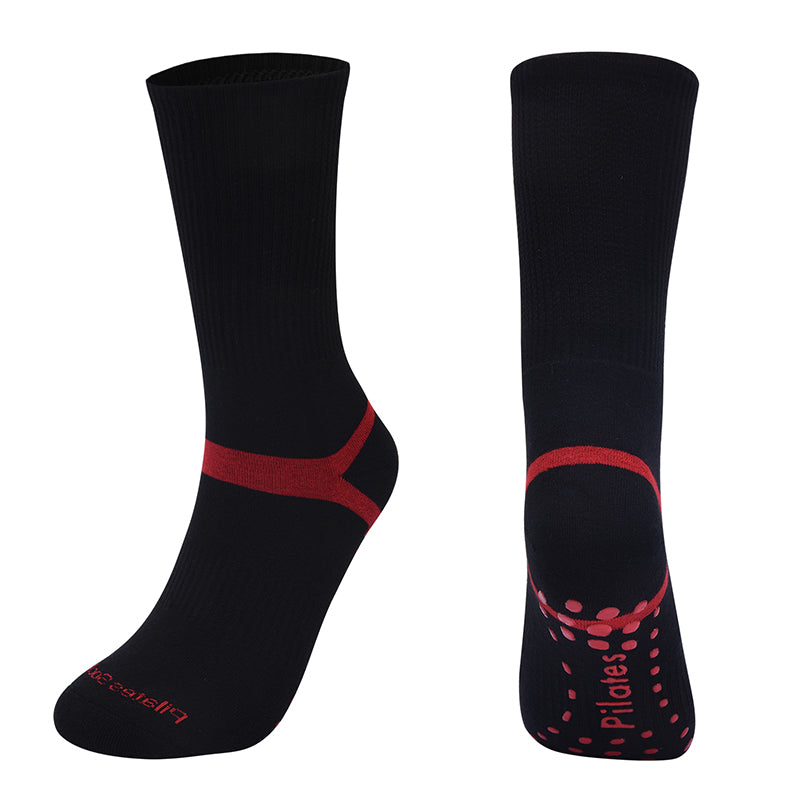 【Yoga Socks】D6黑红-男女通用长筒提花毛圈圆头瑜伽普拉提运动袜