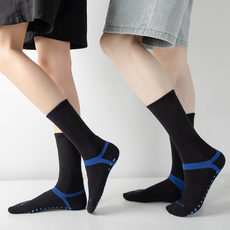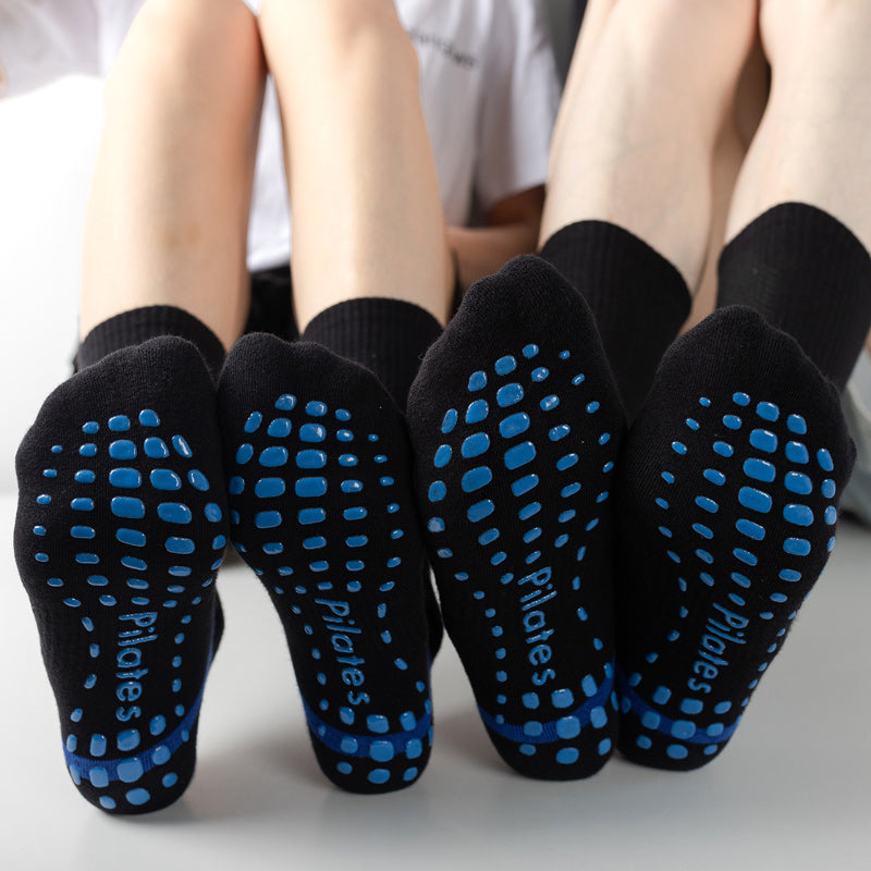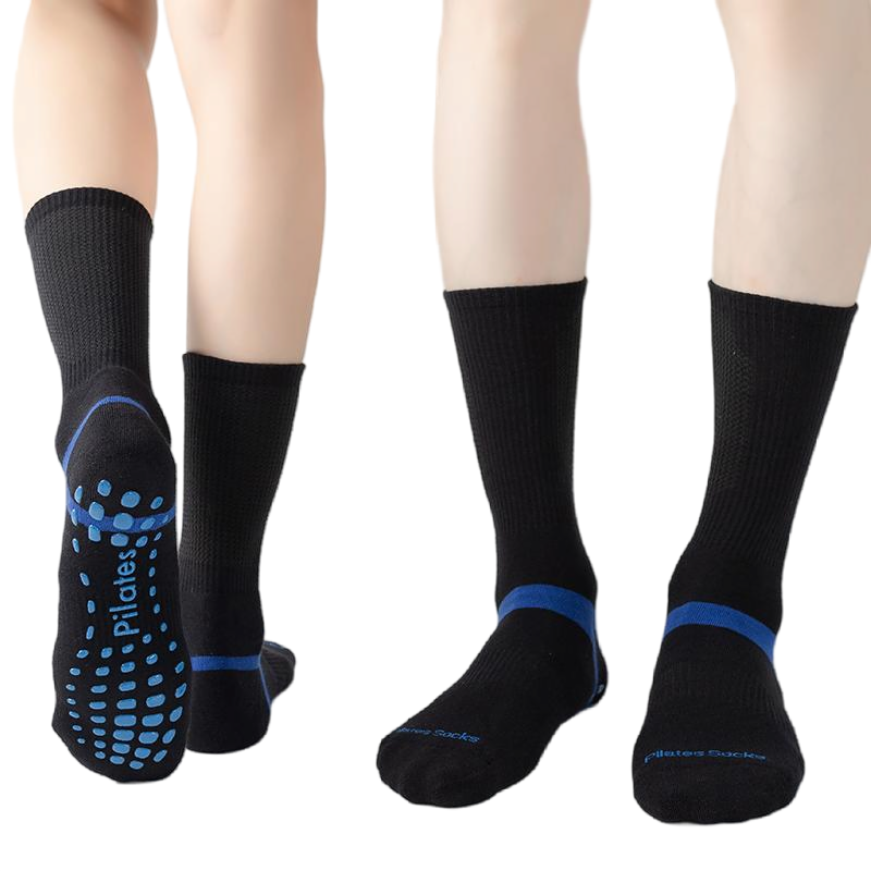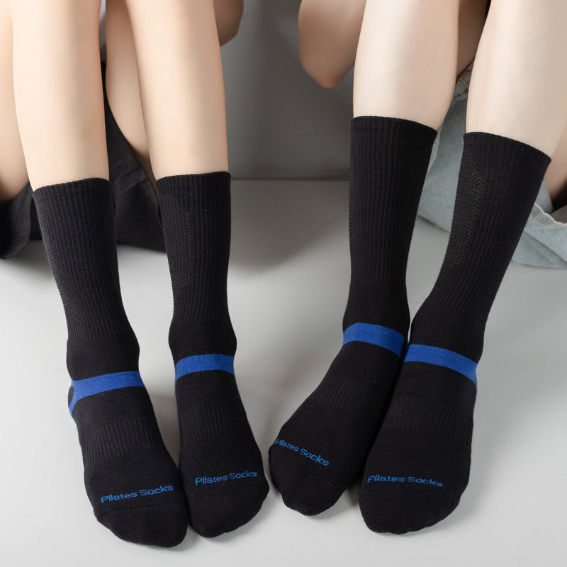 【Yoga Socks】D6黑蓝-男女通用长筒提花毛圈圆头瑜伽普拉提运动袜